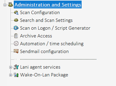 Next to the plain discovery of inventory (hardware and software) the Lan-Inspector also offers a variety of effective tools for the administrator. These are software start prevention in blacklist / whitelist, see 6.6 Blacklist and Whitelist / Remote Software Start Prevention, Wake on Lan functions, or one ideally implemented function for data base archives. It allows, for example, that you can recall every day of the past and execute your queries on the data or that point of time.