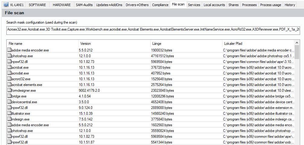 This tab appears only if the scan configuration includes an active hard disc file scan, see 6.9.1 Scan Configuration | ”Menu: Administration and Settings/Scan Configuration“. The tab contains a list of all files that have matched the configured file pattern.