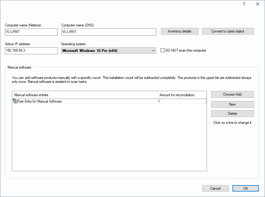 If needed, you can add software products manually to a record set. These entries won’t change during scans. Select the PC you want to edit, open up the context menu with the right mouse button und select “Properties”. In the bottom area of the window you can click on “Add” to create a new line in the list field. You can now click on this new line for a second - as if you wanted to rename a file in the windows explorer. This way you can change the text of the line.