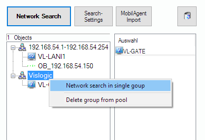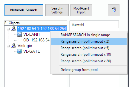 Depending on the search configuration (whether ADS search or IP polling) – individual groups or pools can be re-searched, deleted, or sorted. Using IP ranges, you can re-scan them or scan them with higher timeouts to increase the yield.