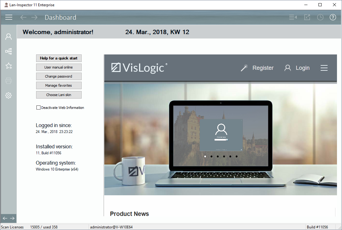 The uppermost treelike icon in the left bar leads you to the location management view (location tree and network search). This view has got an own quick icon because it is likely that you’ll use it very often (search PCs, assign them, scan them and organize the structure).