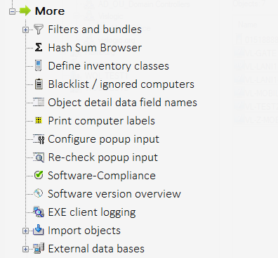Um Ordnung in die vielen Möglichkeiten des Lan-Inspectors zu bringen, wurden einige leistungsfähige Funktionen ausgelagert, da sie nicht so häufig genutzt werden. Unterhalb von „Inventarisierung/Mehr“ finden Sie umfangreiche Möglichkeiten: