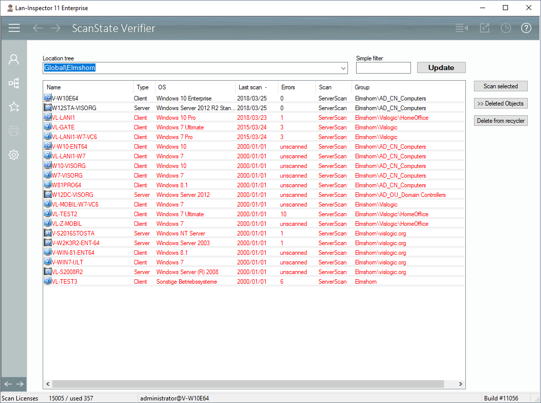 The quality of your inventory data base depends on how up to date the records are. This is the reason why you should consider repeating inventory scans of your network often and continuously. The “ScanState Verifier” helps you check the date of the last scans and re-scan directly if the scan is too old.